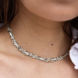 Przeplatany srebrny naszyjnik żmijka